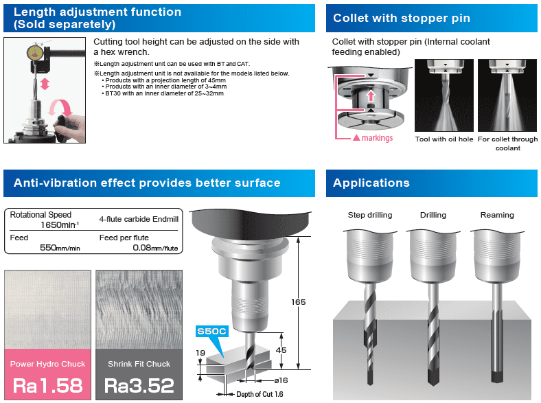 ~Available in BT, CAT 40 and CAT 50, HSK & UTS shank types